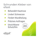 efasit Schrunden Kleber schafft eine für die Wunde günstige Umgebung, indem er einen dünnen, haftenden Film bildet, der die Wunde vor äußeren Einflüssen schützt und isoliert und zugleich für schnelle Heilung und Schmerzlinderung sorgt.