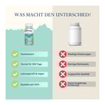 Die angegebene empfohlene tägliche Verzehrsmenge darf nicht überschritten werden. Nahrungsergänzungsmittel sind kein Ersatz für eine ausgewogene und abwechslungsreiche Ernährung und gesunde Lebensweise. Für kleine Kinder unzugänglich aufbewahren.