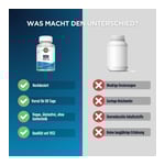 Die angegebene empfohlene tägliche Verzehrsmenge darf nicht überschritten werden. Nahrungsergänzungsmittel sind kein Ersatz für eine ausgewogene und abwechslungsreiche Ernährung und gesunde Lebensweise. Für kleine Kinder unzugänglich aufbewahren.