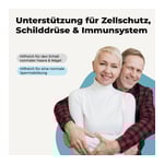 Die angegebene empfohlene tägliche Verzehrsmenge darf nicht überschritten werden. Nahrungsergänzungsmittel sind kein Ersatz für eine ausgewogene und abwechslungsreiche Ernährung und gesunde Lebensweise. Für kleine Kinder unzugänglich aufbewahren.