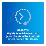 - Täglich eine Weichkapsel nach jeder Hauptmahlzeit mit einem großen Glas Wasser einnehmen.