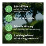 Azelastin: Dringen allergieauslösende Substanzen in den Körper, wird der Botenstoff Histamin an den Schleimhäuten von Augen und Nase frei gesetzt und sie entzünden sich. Der Wirkstoff verhindert die allergische Reaktion, indem er Histamin von den Schleimhäuten fernhält. Auf diese Weise bekämpft der Wirkstoff innerhalb von Minuten die unangenehmen allergischen Symptome an Augen und Nase wie Jucken, Rötung, Schwellung oder Niesen.