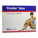 Tricodur Talus komprimiert, stabilisiert und entlastet das Sprunggelenk. Das hochelastische Wellengestrick im Gelenkbereich stellt hohe Dehnungsreserven für die Bewegung bereit und verhindert Faltenbildung und Rutschen. Tricodur Talus besteht aus einem elastischen Formgestrick. In die Bandage sind zwei viskoelastische Pelotten eingearbeitet, die um die Malleolen verlaufen. Sie unterstützen den Abbau lokaler Ödeme und führen zu einer Funktionsverbesserung des Gelenkablaufs. Durch die Verwendung qualitativ hochwertiger Strickgarne ist ein verbesserter Feuchtigkeitstransport nach außen möglich und reduziert somit die Hautmazeration.