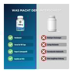 Die angegebene empfohlene tägliche Verzehrsmenge darf nicht überschritten werden. Nahrungsergänzungsmittel sind kein Ersatz für eine ausgewogene und abwechslungsreiche Ernährung und gesunde Lebensweise. Für kleine Kinder unzugänglich aufbewahren.