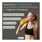 Zur Versorgung mit Vitamineral 31 Plus nehmen Sie 1x täglich einen Stick und lösen ihn in kaltem Leitungswasser auf. Dazu bitte zuerst das Pulver in ein Glas geben und dann Wasser eingießen und umrühren. Je nach Geschmacksempfinden verwenden Sie bitte 300 bis 500 ml Flüssigkeit (Wasser oder Saft). Die angegebene empfohlene tägliche Verzehrsmenge darf nicht überschritten werden!