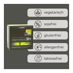 Unser täglicher Bedarf an Vitaminen, Mineralstoffen, Spurenelementen und anderen Vitalstoffen hängt stark von individuellen Ernährungsgewohnheiten sowie Anforderungen in Beruf und Freizeit ab. Vitamineral 31 Plus ist ein sorgfältig aufeinander abgestimmtes Nahrungsergänzungsmittel. Es enthält wichtige Mikronährstoffe unserer täglichen Ernährung, die den Funktionsablauf unseres Körpers unterstützen, insbesondere in den Bereichen Energiestoffwechsel und antioxidativer Zellschutz.